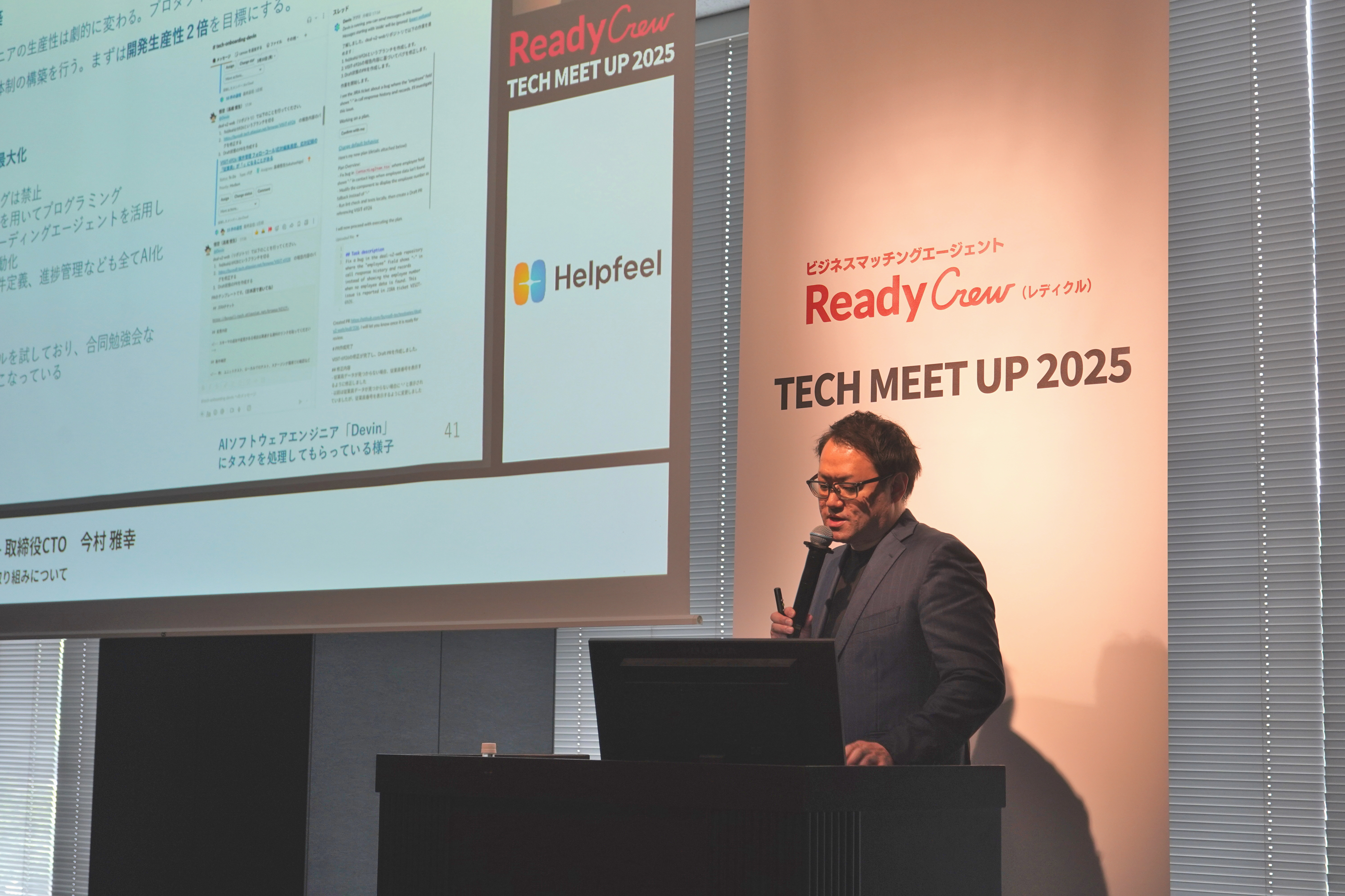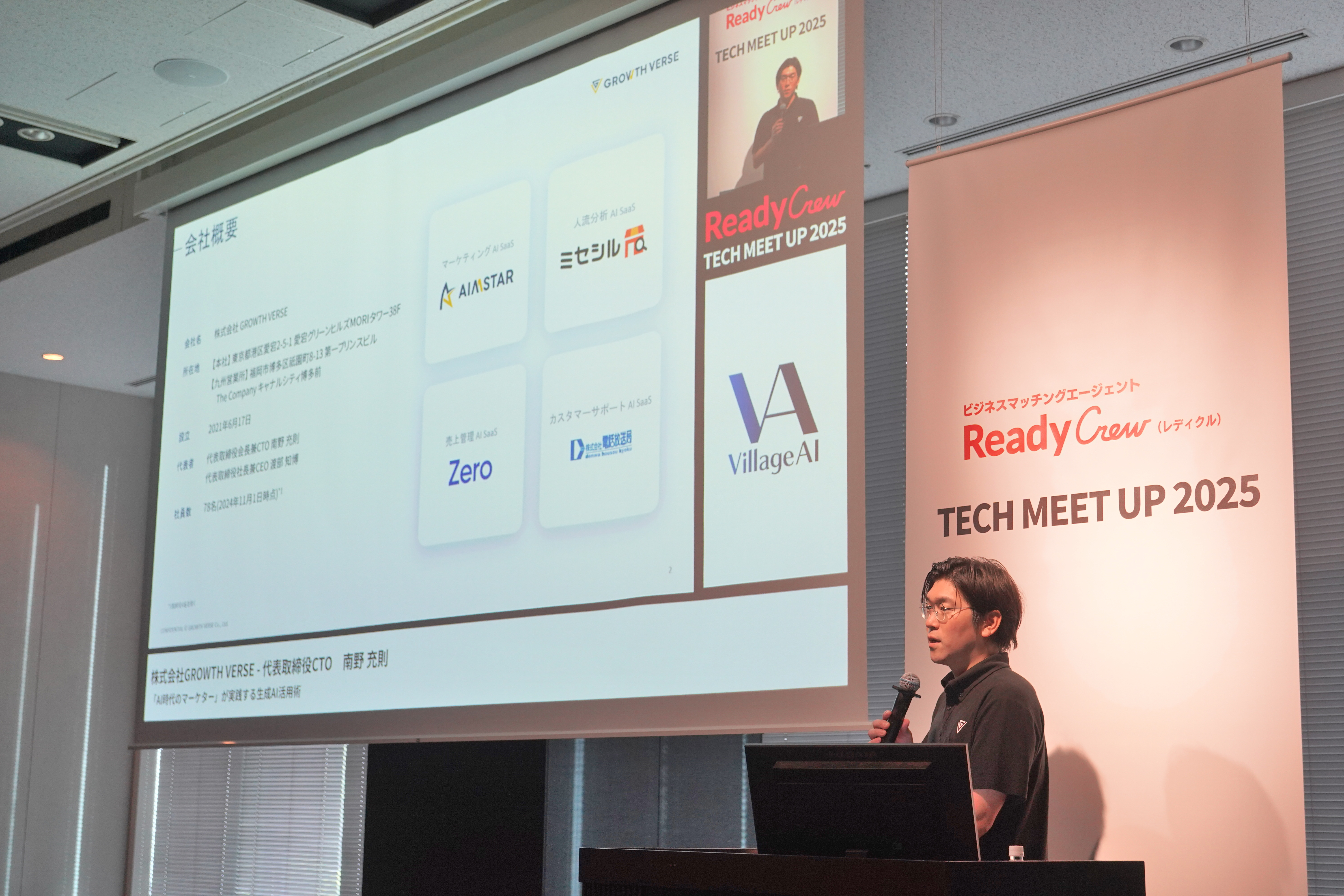 ビジネスマッチングコミュニティ「Ready Crew(レディクル)」を運営する、フロンティア株式会社(本社:東京都渋谷区、代表取締役社長:高橋 政裕、以下 当社)は、AIを活用した業務改革や新規事業創出の実践事例を共有し、参加者間での知見交換を促進することを目的に、最新のAI業務活用とテクノロジーに触れるイベント「Readycrew TECH MEET UP2025」を、2025年7月17日(木)に御茶ノ水ソラシティにて開催いたしました。