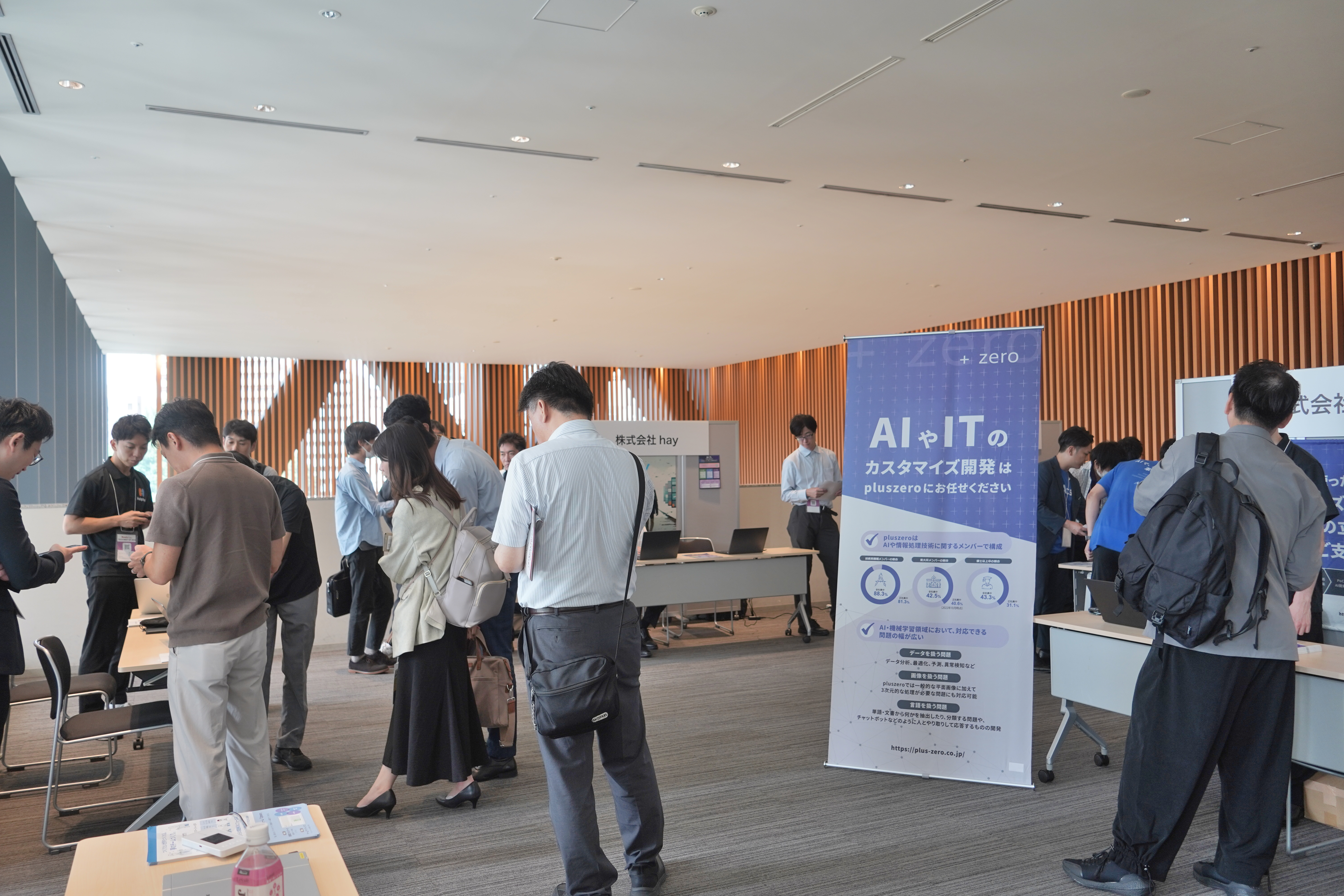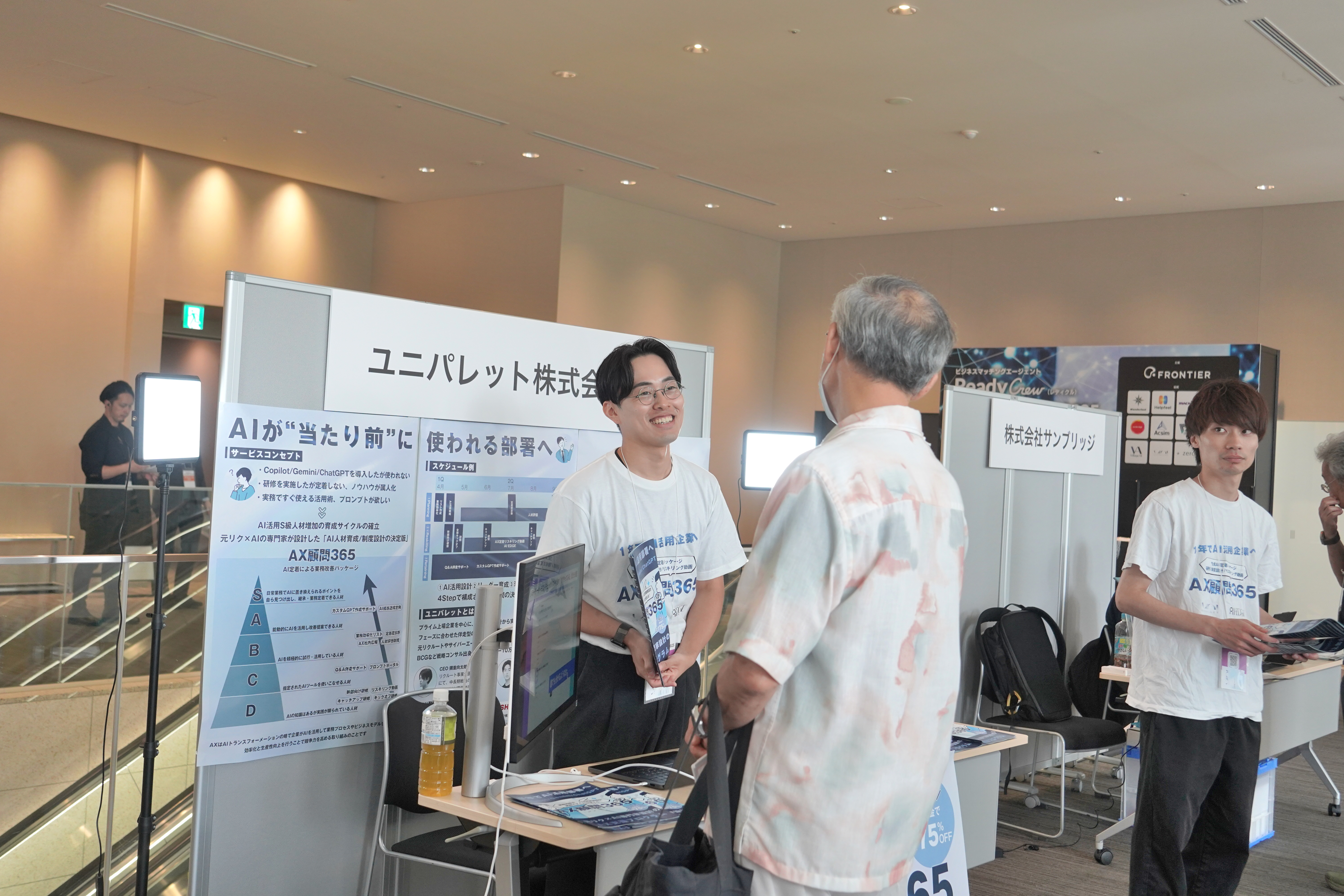 来場者は展示ブースで、デモンストレーションを通じて 「自社のどの業務に適用できるか」 を具体的にイメージしながら担当者と意見交換。