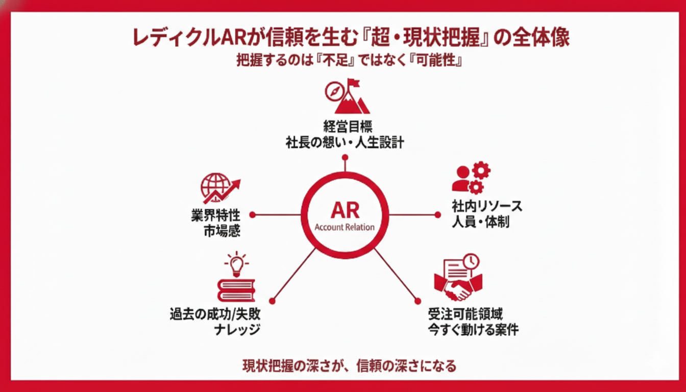 「商談が組めました、あとは頑張ってください」というスタンスは、レディクルには存在しません。ARは、クライアントにとっての「社外の営業企画室」として機能します。